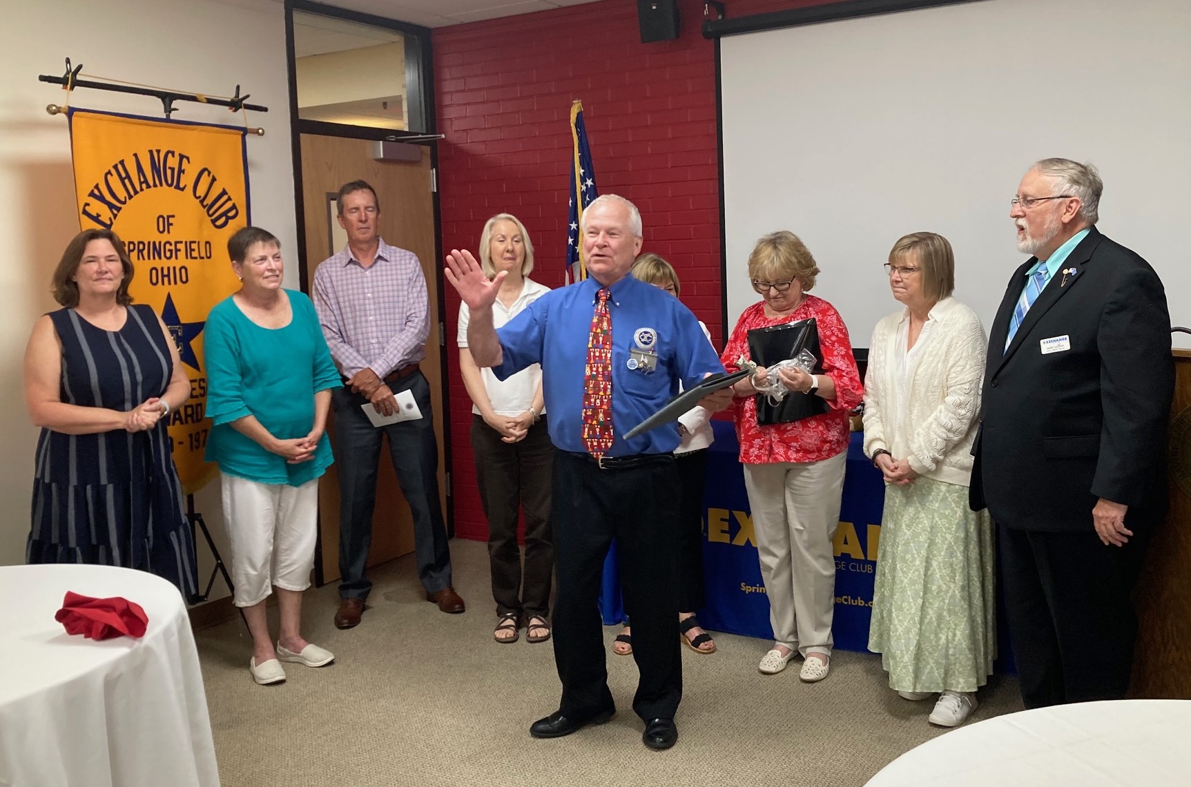The Exchange Club of Springfield, Ohio held its annual Officers and Directors Installation Banquet on Tuesday, June 17, 2025, at the BPSC Alumni Room on the campus of Wittenberg University with 24 members and guests present. OH-WV District President Mark Sullivan presided over the Installation Ceremony. The event included a presentation on the club’s 65 amazing projects throughout 2024-25 Exchange year, a video presentation submitted by District and Club Youth of the Year Olivia Stevens of Kenton Ridge HS, as well as a presentation about Exchange’s club, district, and national, structure and resources. The catered meal was excellent, and fellowship was fantastic. A great time was had by all. Congratulations to Club President Jill Parker, Immediate Past President Skip Warner, Treasurer Peg Haemmerle, Secretary David Sauter, and Directors Beverly Sewell, Janet Sauter, Jackie Downing, Joy Dabe, Tim Parker, and Carin Little. Great leadership leads to great results and the future looks bright! Unity for Service!