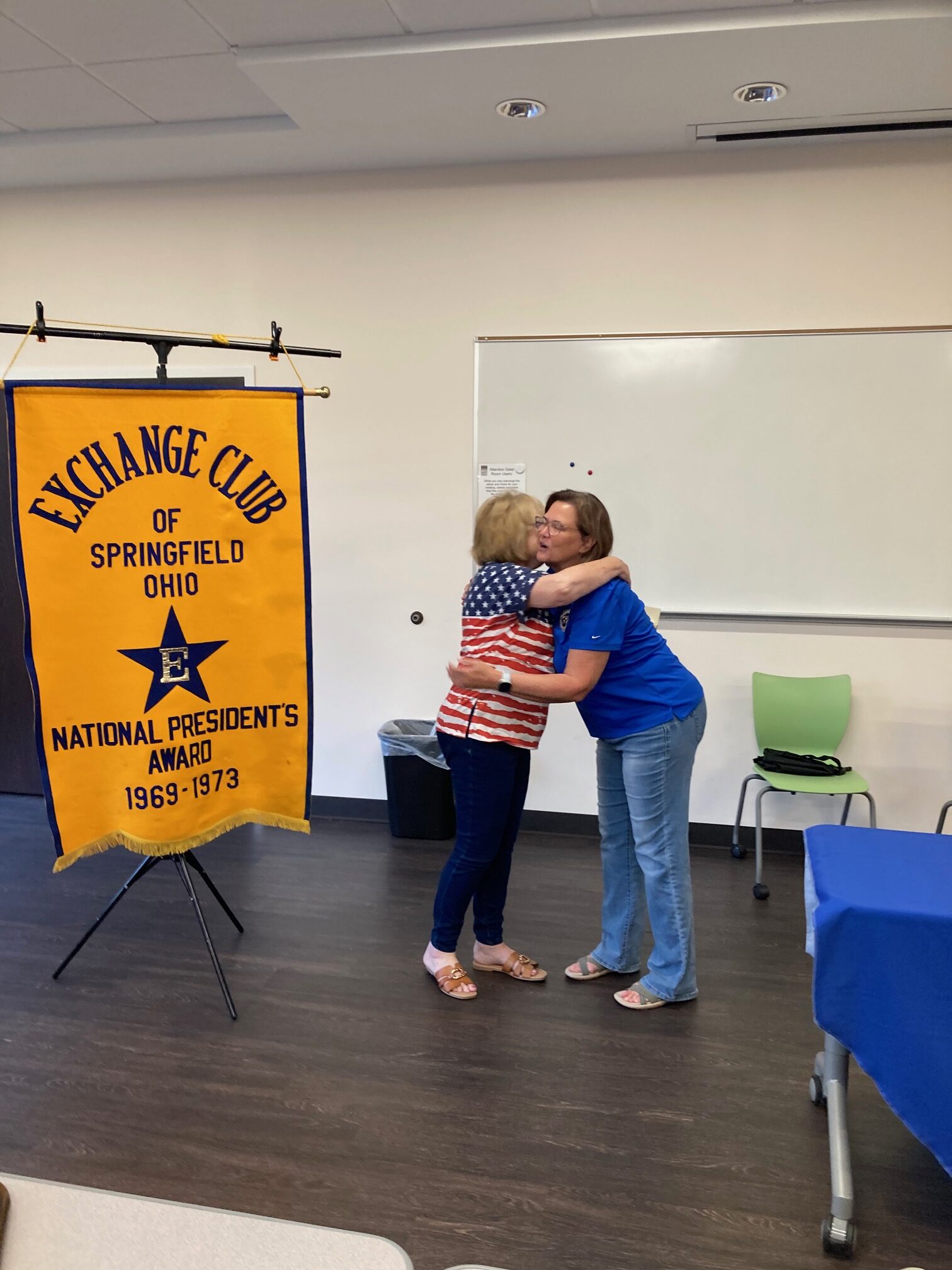 At the July 8th meeting of the Exchange Club of Springfield, Ohio, the club recognized Bev Sewell’s 12 years of service as Club Secretary, who will serve now on the club’s board of directors. Thank you Lady Beverly for your years of service as secretary! President Jill presented a craft store gift card, much appreciated by a very touched Lady Beverly! Many thanks to club members!