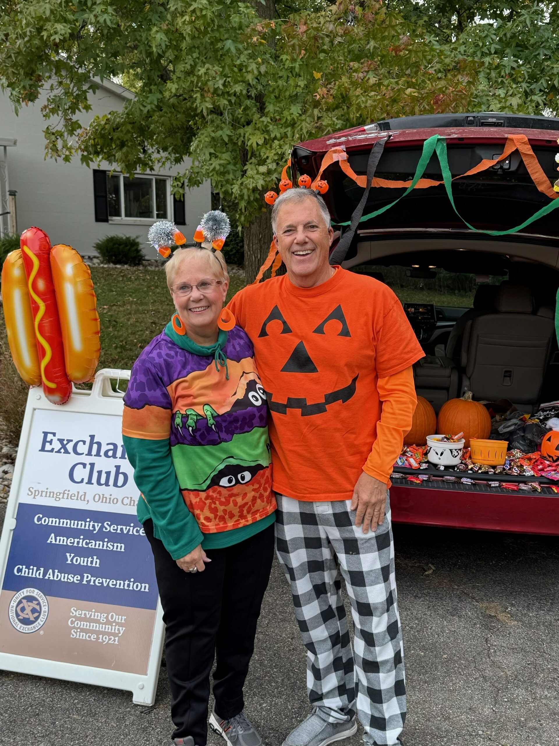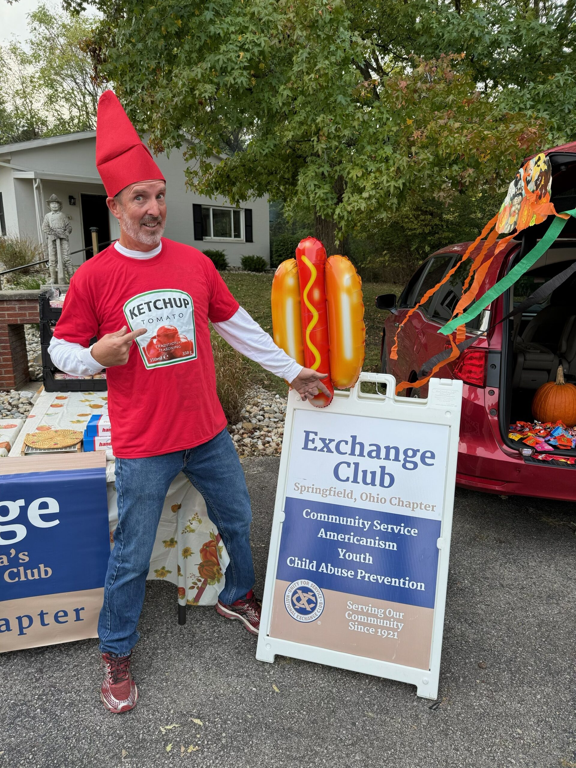 The Firefighters Trunk or Treat Event saw twelve members of the Springfield Exchange Club grill and serve 320 hotdogs to over 300 trick or treaters (probably more like 500+…just a guess) at the Firefighters Clubhouse on N. Bird Road. Thanks to Chair Karen Hupp and members Skip Warner, Jill Parker, Tim Parker, Janet Sauter, Dave Sauter, Terry Rust, Joy Dabe, Karen Sullivan, Don Lynam, Mark Sullivan, and Andy Kittles. Special thanks to Jason from the Tigers Exchange Club who performed magic tricks for the amazed children of all ages!