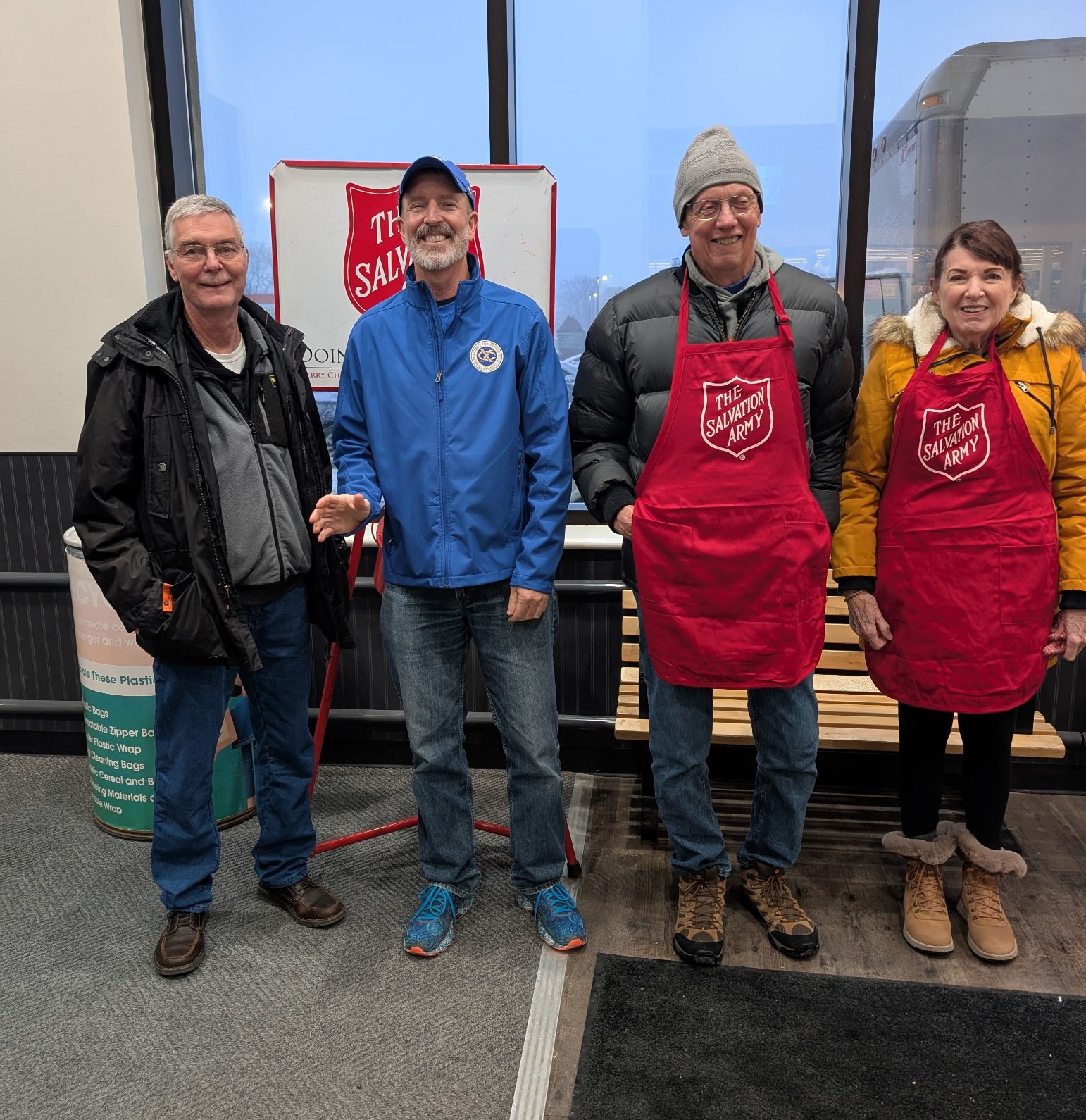 Eight members of the Springfield Club participated in the local Salvation Army Red Kettle Bell ringing project once again this year. It is a lot of fun and the two hour shifts go quickly. They were even protected from the zero degree windchill by being in the spacious entry way at the East Main Street Kroger. Thanks to Exchange Elves Skip, Carin, Peg, Mark S., Alan, Tim, Don, and Robin.