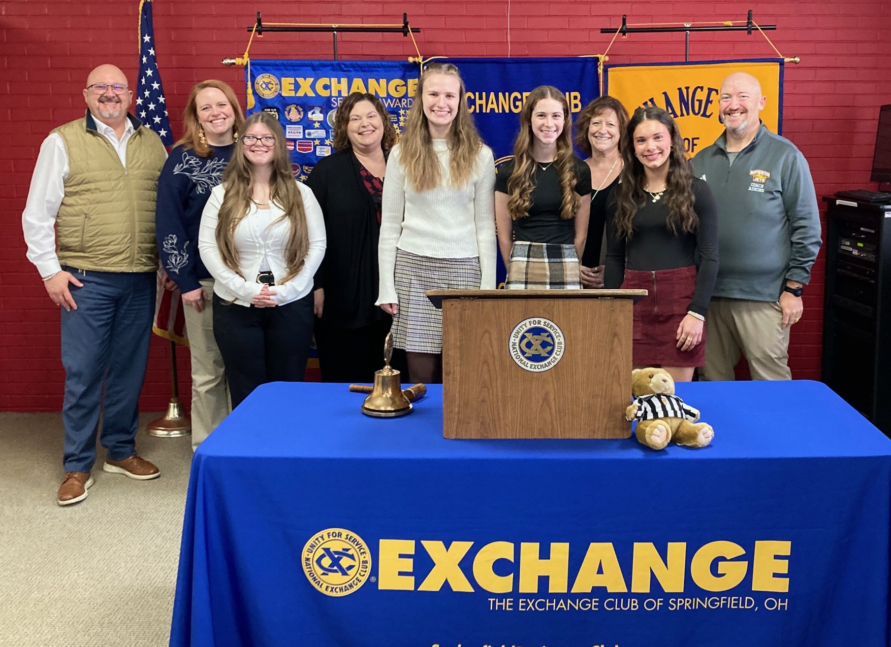 The Exchange Club of Springfield, Ohio welcomed four students of the month and their counselors Tuesday. Youth Chair Karen introduced Justina Welch representing Springfield Career Technology Center and Counselor Michael Rice, Tori Schlueter representing Emanuel Christian Academy and Counselor Alicia Kidder, Sara Kottmyer representing Tecumseh and Counselor Kristie Talley, and Sophia Ripley representing Northeastern and Counselor Shawn Adkins. Each student of the month received a $100 stipend and Certificate and the opportunity to enter the Youth of the Year contest and win a $1,000 college scholarship,1st Runner-up will win a $750 college scholarship, and the 2nd Runner-up will win a $500 college scholarship.